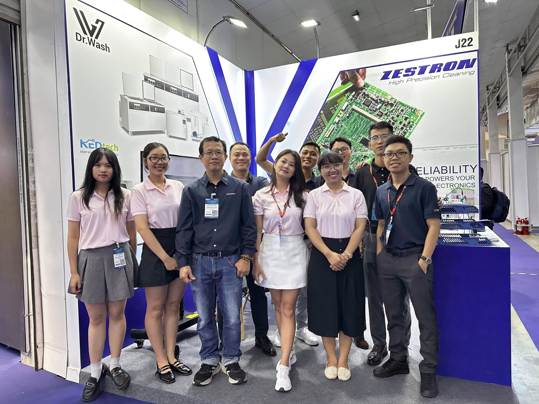 Tham gia NEPCON Vietnam 2025, KNK đã có dịp giới thiệu đến khách tham quan các giải pháp và sản phẩm tiêu biểu trong ngành điện tử, bao gồm: Zestron, KED, Dr. Wash, Valtech. Gian hàng của KNK thu hút sự quan tâm từ nhiều đối tượng khách hàng: từ các nhà máy sản xuất, đơn vị thương mại đến khách hàng cá nhân.